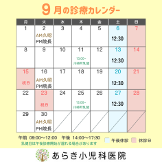 9月の診療体制のお知らせ